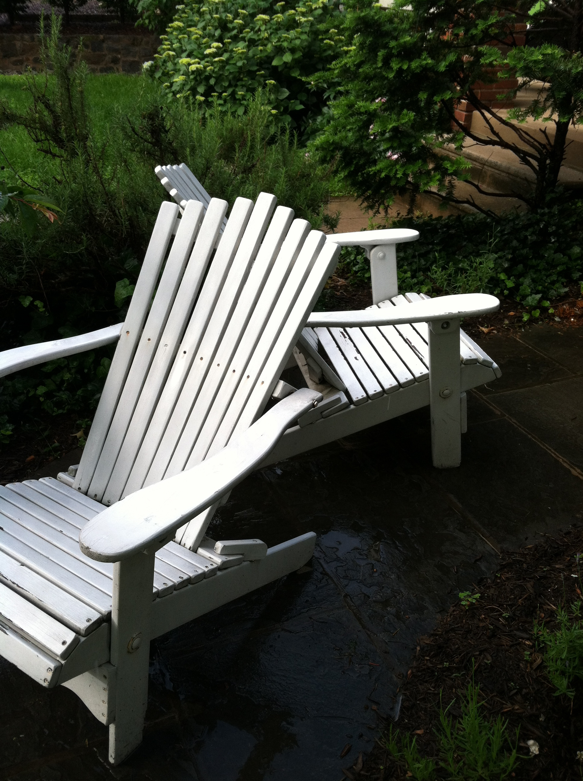 The other day, driving my daughter to school, I caught sight of an object on the side of the road. My heart raced. What would it be? Trash or treasure? The next great find? or something best left for the junkyard? In this case, I passed, because as I drew closer I saw that that beautiful object obscured by shining sun was just an old TV stand. But I don’t give up because sometimes you find something truly beautiful, such as these funky Adirondack chairs. Even though it took me twenty minutes to get them in the car, it was well worth it!