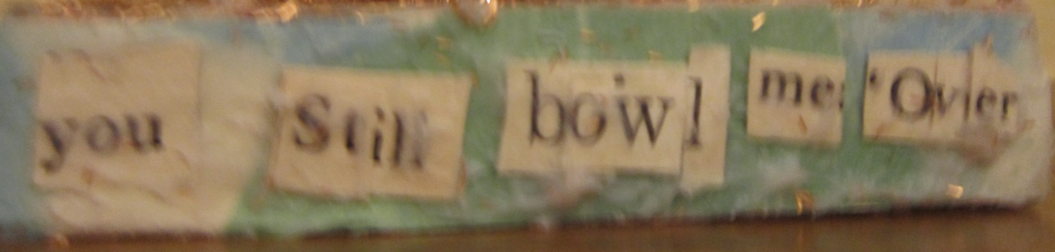 The words at the bottom of the trophy are cut from old books–I had found all of them, only to put too much gunk and glitter on top–obliterating the words and requiring me to piece them together from other words. Still the overall effect was fun and gives a nice, shabby chic feel.