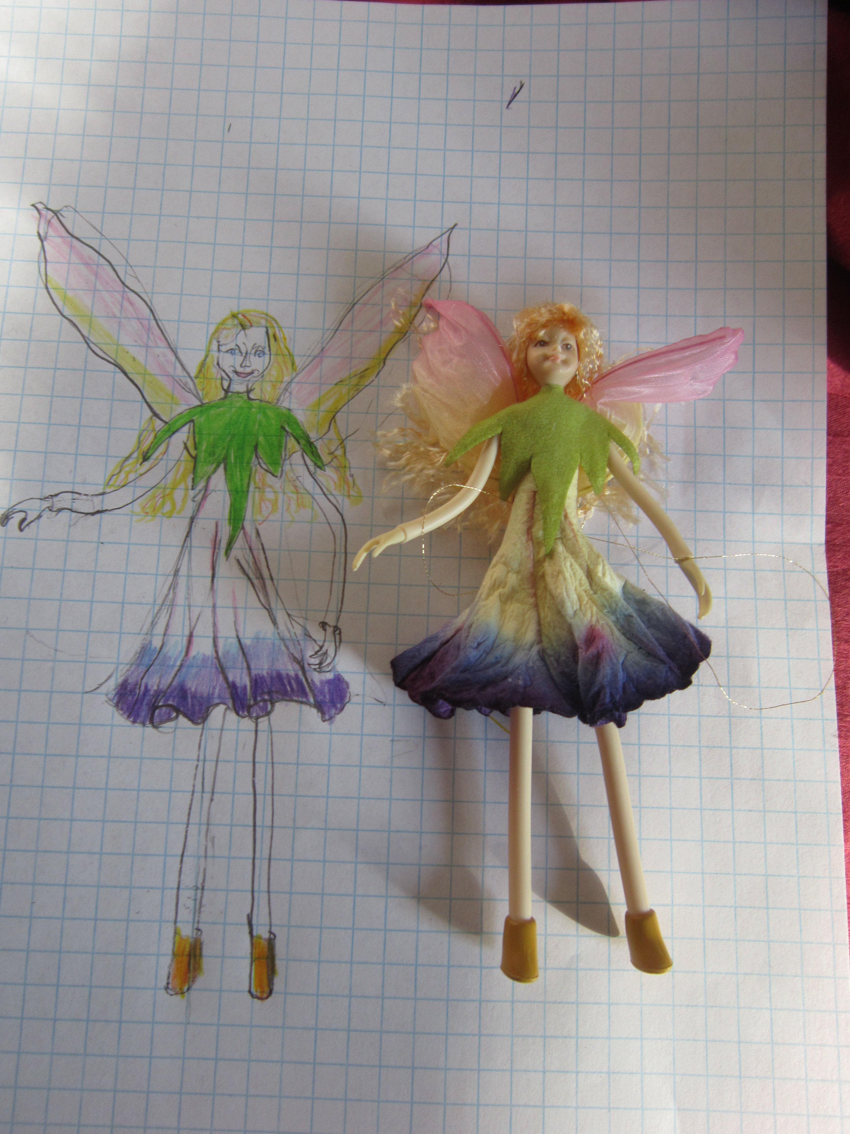 Why to my surprise? Wouldn’t you expect the child of crafty lawyer, with all those crafty forebears, to be into art? Ah, that’s not the way the world works, is iit? She always enjoyed art, but didn’t have a passion for it, even though she has great color sense. She never particularly liked making jewelry, either, especially since she could just tell me what things she liked and I would make it! But in the last couple of months that has all changed. Not only has she been drawing every day, but she designed a few necklaces as thank you presents for people.